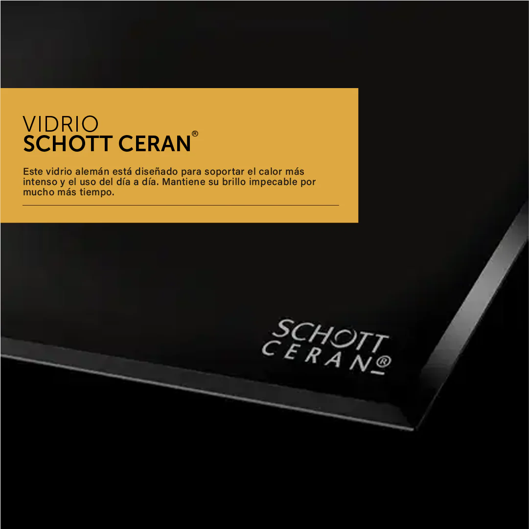 El anafe a inducción eléctrico empotrable de 90 cm Vondom fue diseñado para quienes quieren tecnología avanzada, potencia y estética profesional en su cocina. Su gran superficie de vidrio templado no solo realza el estilo de tu espacio, sino que también simplifica la limpieza tras cada uso.