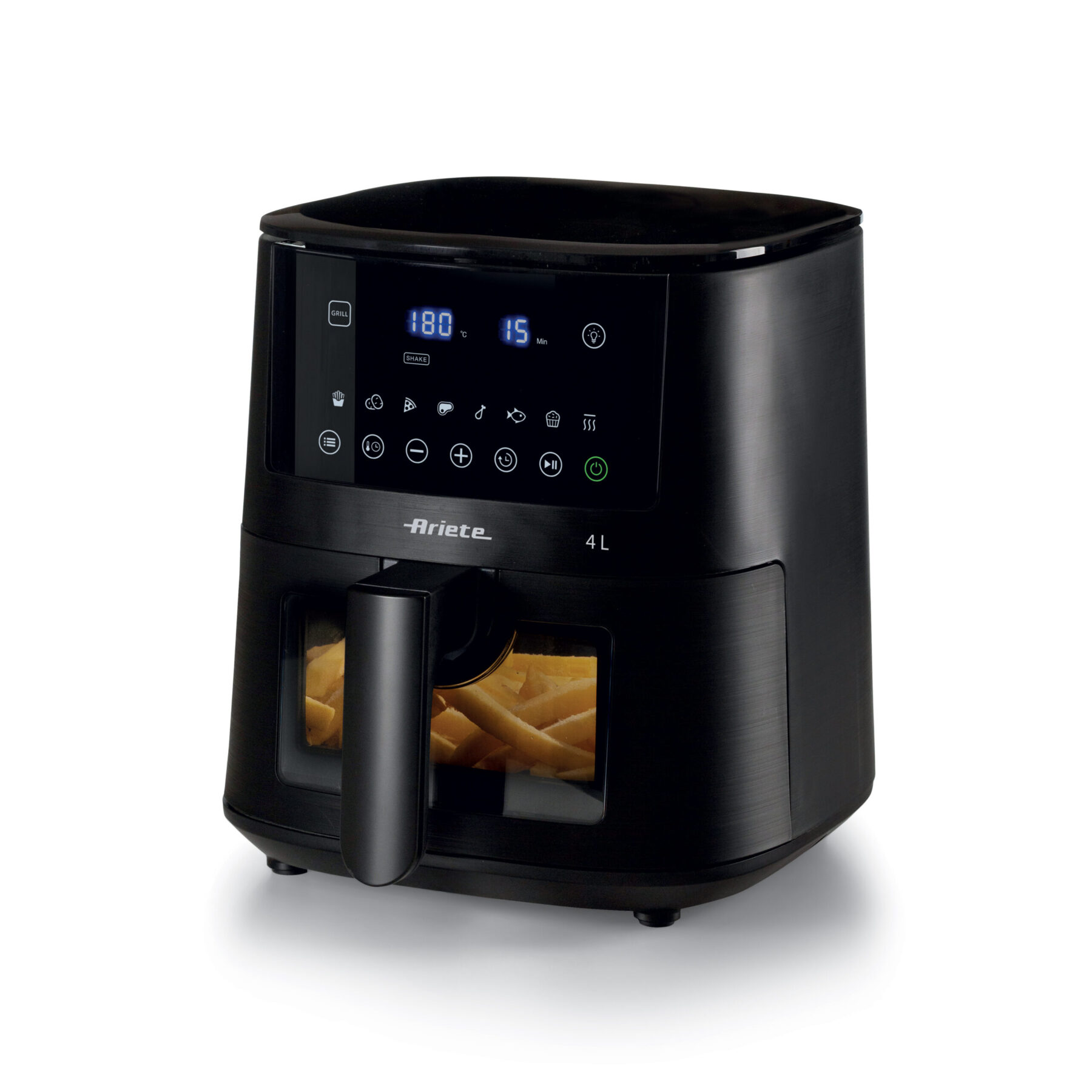Con la freidora de aire de 4L, puedes freír grandes cantidades de cualquier plato que desees con solo una cucharada de aceite para obtener frituras saludables y sabrosas. Gracias a la cesta de 4L, con la freidora de aire Ariete de 4L, ¡podrás cocinar hasta 1,5 kg de patatas fritas a la vez! Patatas fritas, pero no solo eso, también croquetas, pescado, carne y muchos otros alimentos empanizados, ya sean congelados y listos para freír o frescos y recién empanizados, gracias a sus 9 programas preestablecidos.