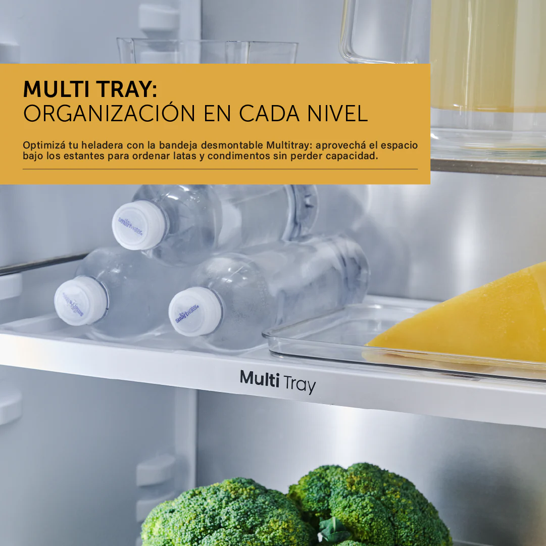 Gracias a su tecnología Inverter, esta heladera optimiza el consumo de energía, reduce el ruido y mantiene un enfriamiento constante y eficiente. El sistema No-Frost evita la acumulación de hielo en el interior, asegurando que el frío se distribuya de forma homogénea y eliminando la necesidad de descongelar manualmente.