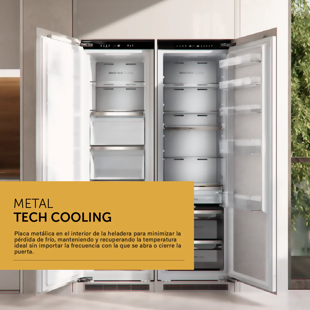 Su diseño panelable facilita su integración con el mobiliario de cocina, brindando un acabado moderno y continuo que eleva la estética del espacio. La iluminación LED interior proporciona una luz clara y eficiente para ver tus alimentos sin abrir innecesariamente la heladera.