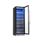 La puerta con vidrio templado y sello hermético contribuye a conservar un ambiente controlado y saludable, minimizando la pérdida de frío y reduciendo la entrada de humedad externa. El diseño elegante y funcional, junto con un panel de control intuitivo, facilita el uso diario y se integra bien en cocinas modernas o ambientes gourmet.