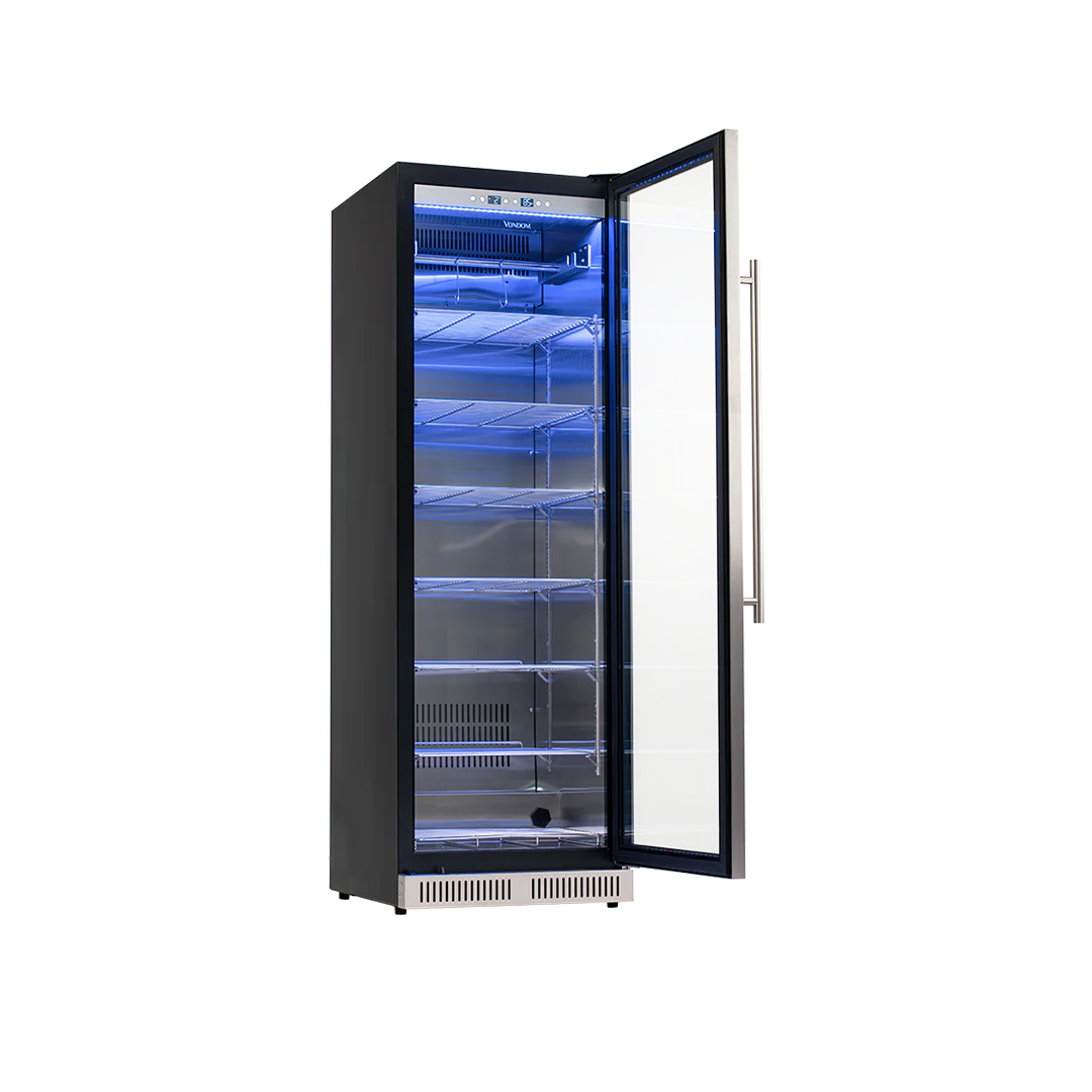 La Heladera para Madurar Carne Vondom de 415 L está especialmente diseñada para quienes desean llevar al máximo la experiencia de madurar cortes de carne en casa o en espacios gastronómicos. Con una gran capacidad interna, podés almacenar y madurar varios cortes al mismo tiempo sin comprometer la circulación de aire ni la calidad del proceso.