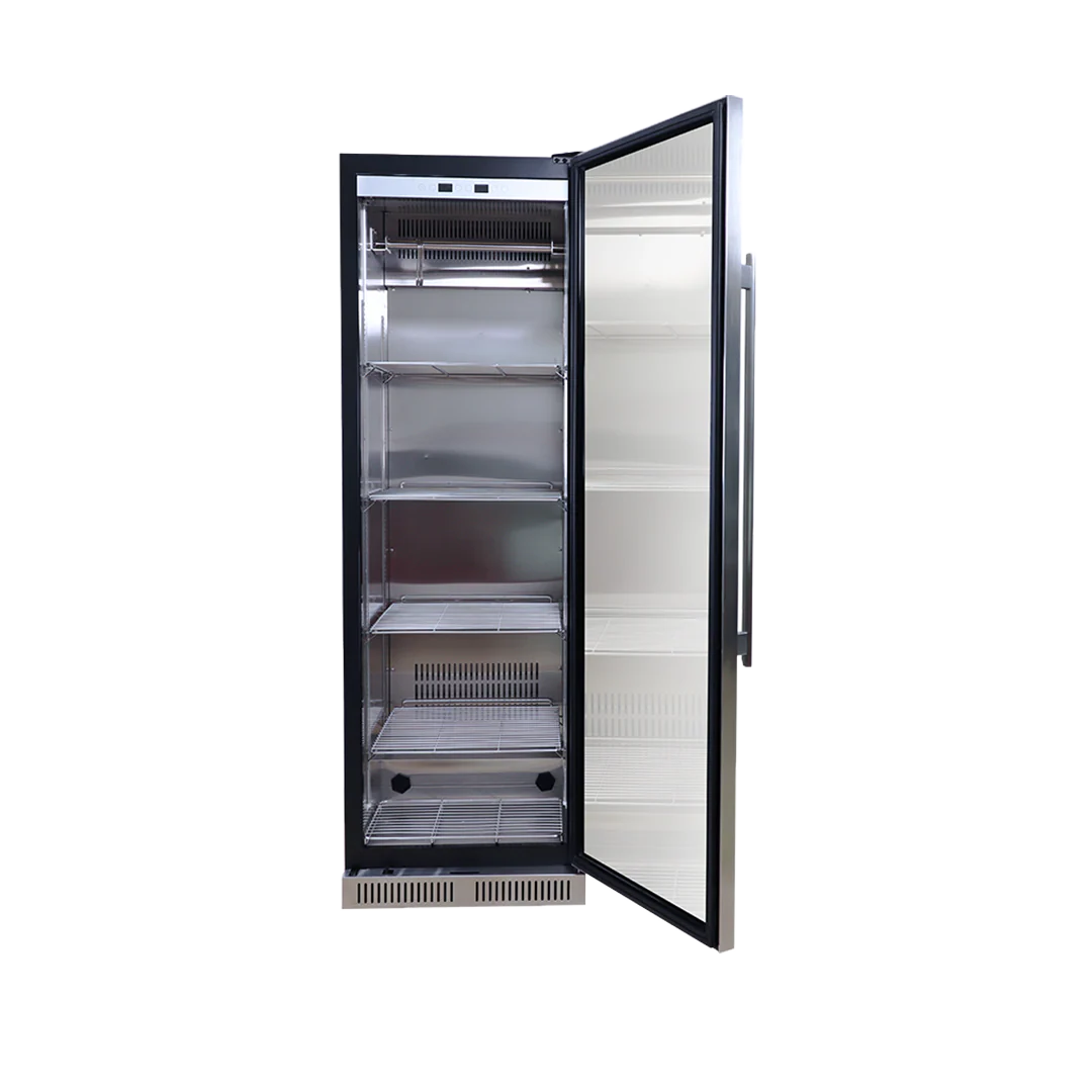Este equipo incorpora un control digital de temperatura y humedad, que permite ajustar con precisión las condiciones óptimas según el tipo de corte y el nivel de maduración deseado. El sistema de circulación uniforme de aire asegura que cada pieza de carne reciba el mismo trato térmico, promoviendo una maduración pareja y mejorando la textura y el sabor con el tiempo.
