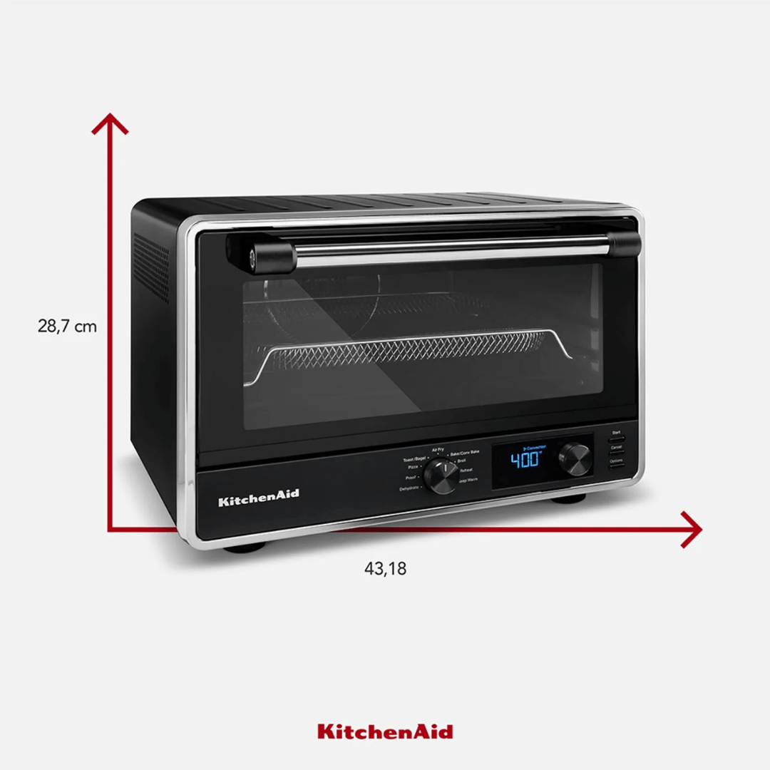 Hay 10 funciones esenciales para la vida cotidiana, como tostar, hacer bagels, asar, parrilla, freír al aire, fermentar, deshidratar, mantener caliente, pizza y calentar. Sirve pan crujiente para el desayuno con la función Bagel. Prepare carne para el almuerzo con la función Grill. Haz una fritura saludable y sin aceite con la función Air Fryer. Almuerzo de domingo garantizado con hermosas carnes rojas a la parrilla.