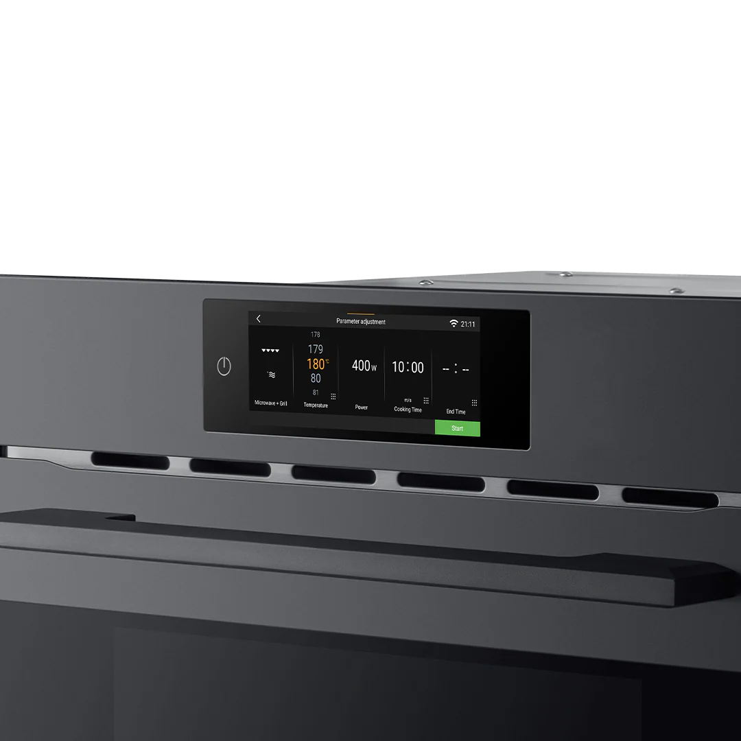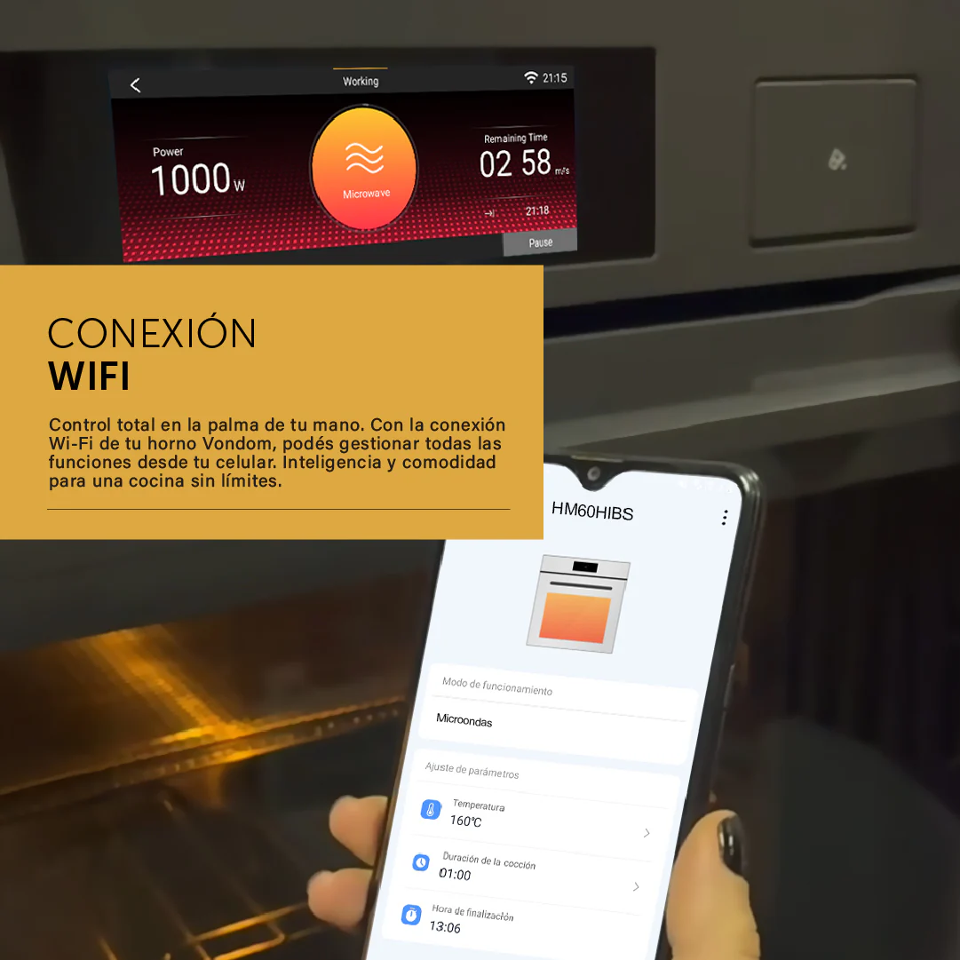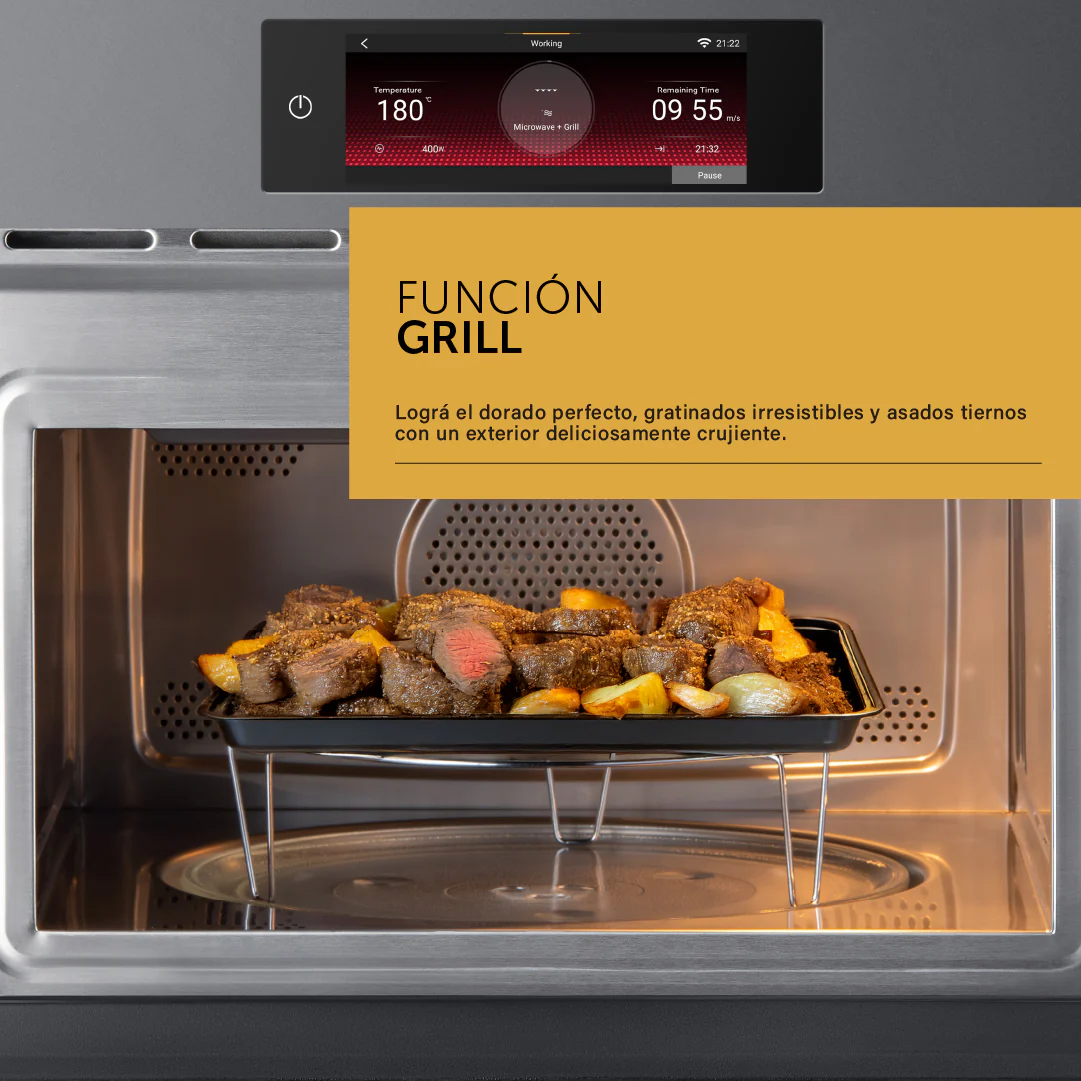 Su pantalla TFT proporciona una interfaz visual clara y amigable que hace que todas las funciones sean fáciles de seleccionar y comprender, sin complicaciones. Además, la conectividad Wi-Fi permite controlar el microondas desde tu smartphone a través de la app, brindando aún más flexibilidad y comodidad en el día a día.